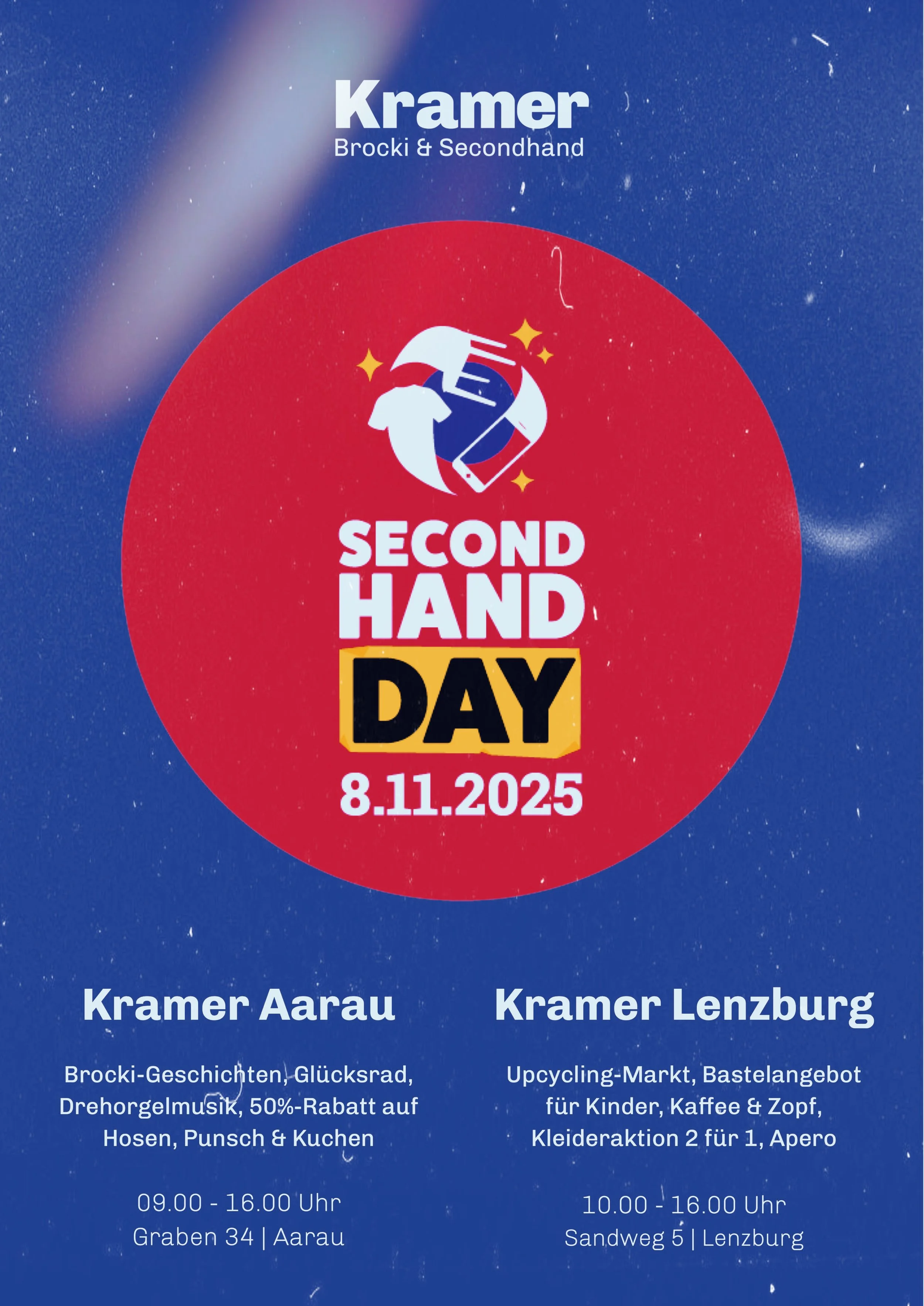 Wir freuen uns, mit tollen Aktionen im Kramer Lenzburg und Kramer Aarau am Secondhand Day teilzunehmen. Kommt vorbei und lasst Euch überraschen!